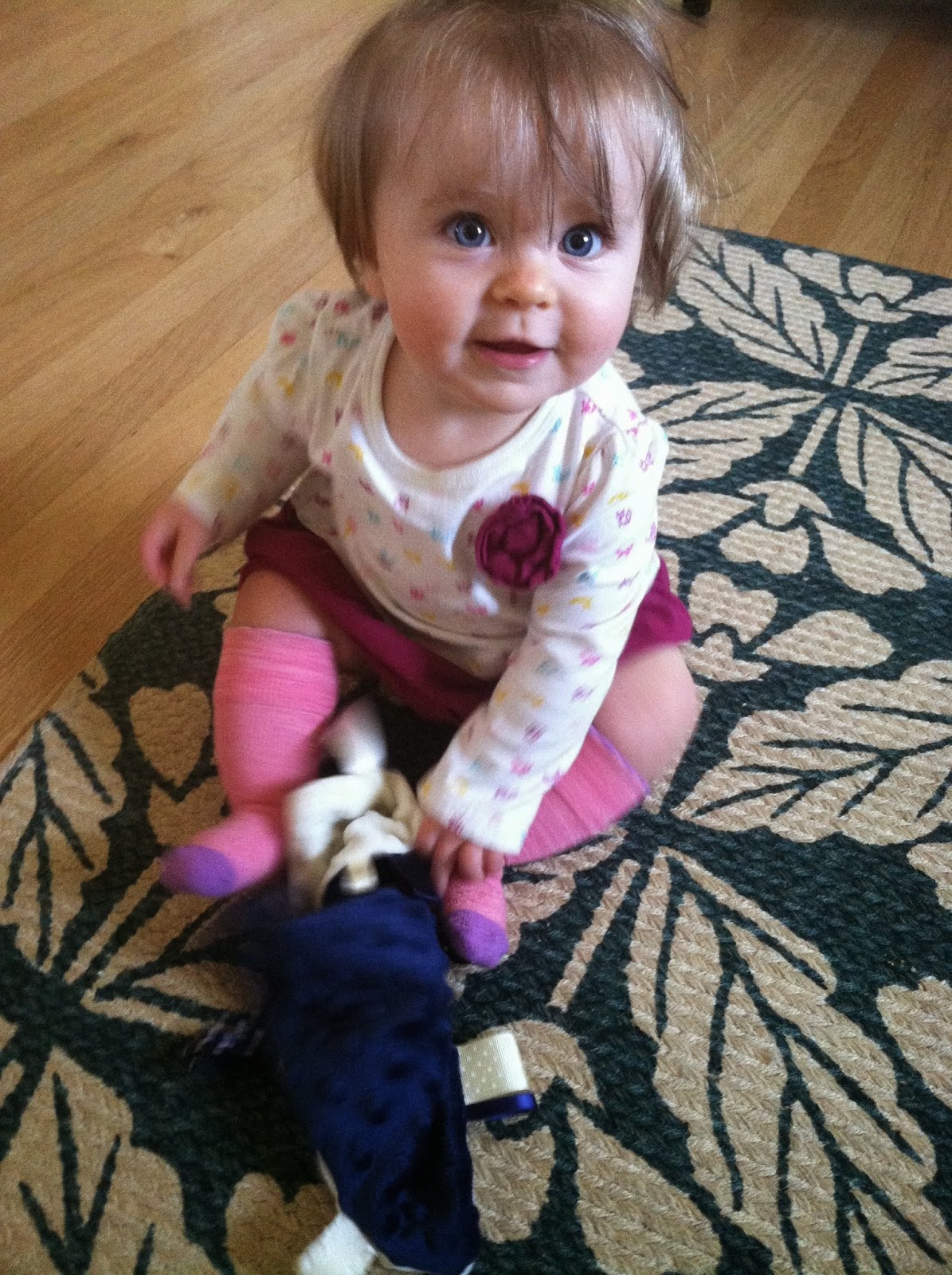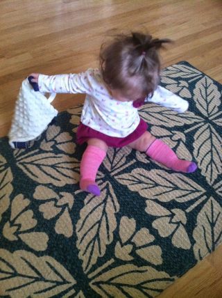I have to say that while Genevieve mostly chews on toy trains and the stray matchbox car, she has been quite taken with her darling little blankie, which I purposely ordered in atypical girly colors, just to throw some contrast into her pink and cream-colored universe.